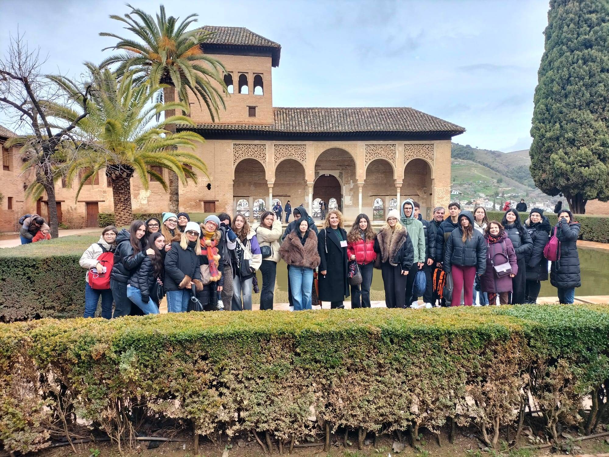 El miércoles día 28 de enero el grupo Erasmus del proyecto MARE NOSTRUM, visitó la Alhambra en compañía del Director del IES, Octavio Martínez y la Coordinadora Bilingüe, Charo Reyes. A pesar de las muy adversas condiciones climáticas del día, el alumnado y profesorado turco, griego e italiano participó de una visita guiada en inglés con paradas estratégicas dentro del recinto que contribuyeron a un mayor entendimiento de nuestro patrimonio y permitió puntos de debate sobre los aspectos culturales y sociológicos de nuestra civilización mediterránea. Una mañana intensa, llena de experiencias.