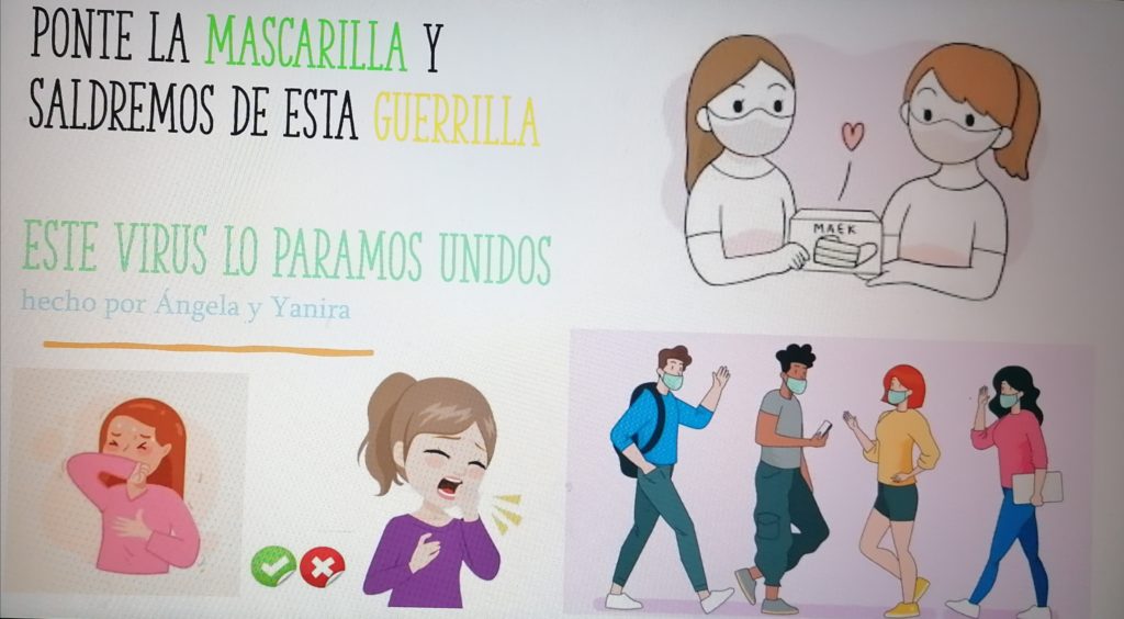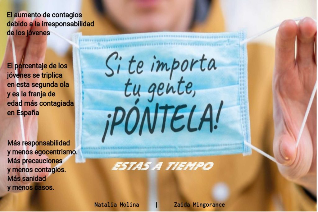 Hemos lanzado una campaña de sensibilización sobre el uso de mascarillas entre jóvenes en la que ha participado alumnado de 1º Bachillerato A, 3º ESO B y 1º ESO B así como un equipo docente animado por la profesora Isabel Arias. Confiamos en que sirva para concienciar sobre la importancia de las mascarillas durante la pandemia del virus Covid-19.