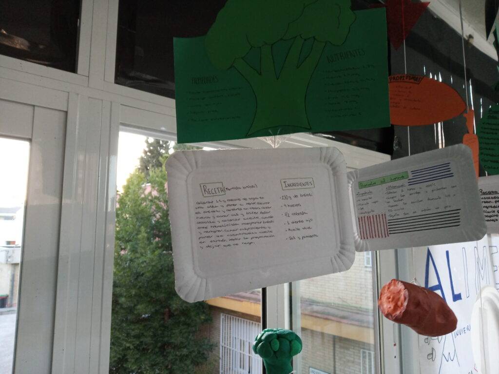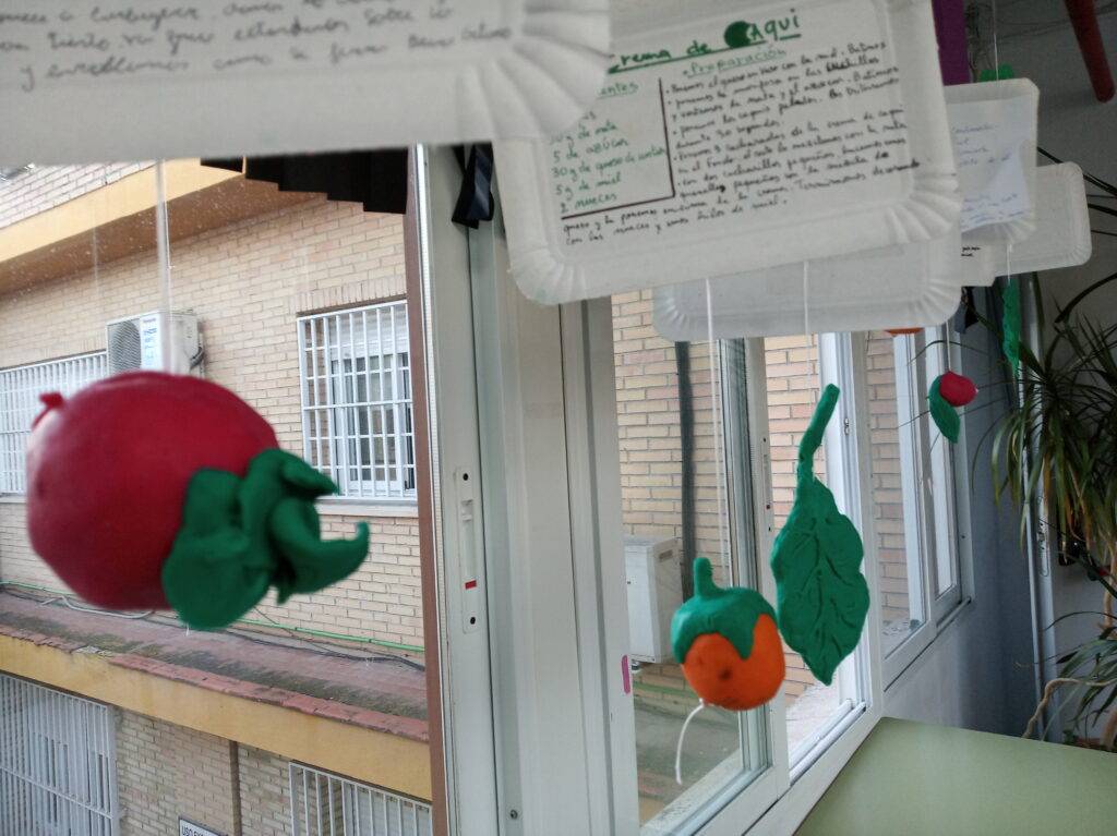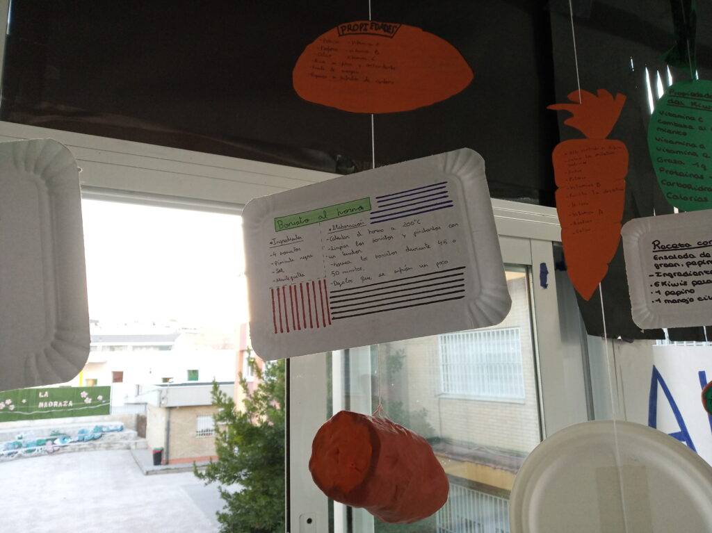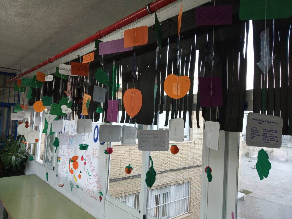 Han seleccionado frutas y verduras propias de otoño e invierno y han realizado una exposición en el Pasaje de la Libertad. De cada producto indican sus principales valores nutricionales y proponen una receta. La información se acompaña con dibujos y vistosas réplicas de frutas y verduras con cuelgan del techo a modo de móviles.