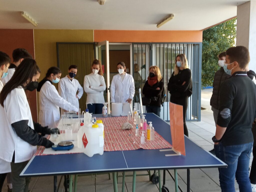 El taller de elaboración de “Gel hidroalcohólico” ha sido impartido por alumnado de 1º Farmacia y coordinado por la profesora María Iglesias. Además de mostrar instrumental y operaciones básicas de laboratorio, en el taller se ha explicado la importancia del gel hidroalcohólico así como los problemas para la piel por su uso excesivo.