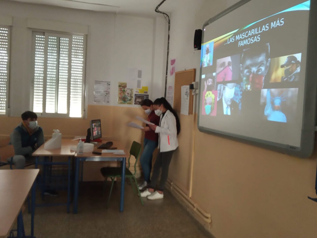 En el taller “Mascarillas en nuestras vidas” se presta atención a las mascarillas intentando responder a múltiples interrogantes: ¿desde cuándo se usan?, ¿qué personajes de ficción las utilizan?, ¿cómo nos comunicamos con las mascarillas?, ¿se usan por obligación o por convencimiento?, ¿son un elemento de moda?, ¿qué se puede crear con una mascarilla usada?, etc. Este taller ha sido coordinado por la profesora Montse López e impartido por Kawtar Ait-Aicha, Carmen Fuentes, Elva Hernández, Paula Izquierdo, Natalia Jiménez, Alicia Robles, Ilias Tassi y Marta Velasco (2º ESO).