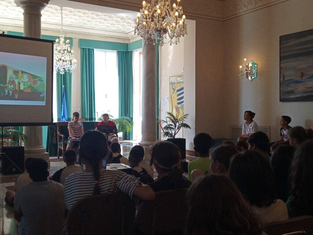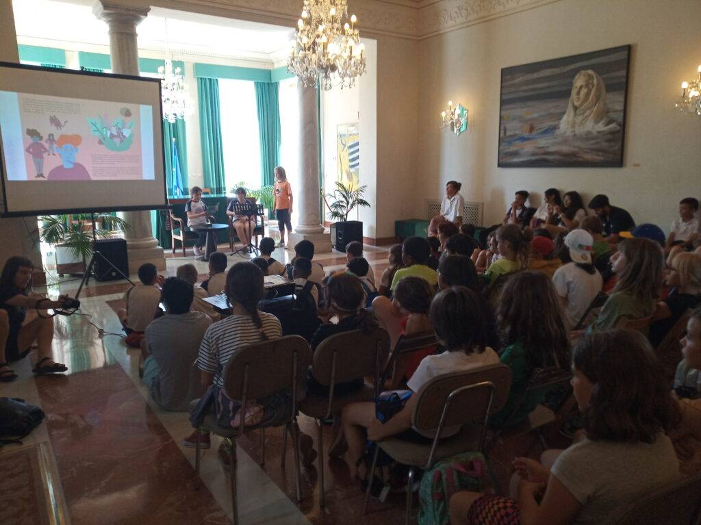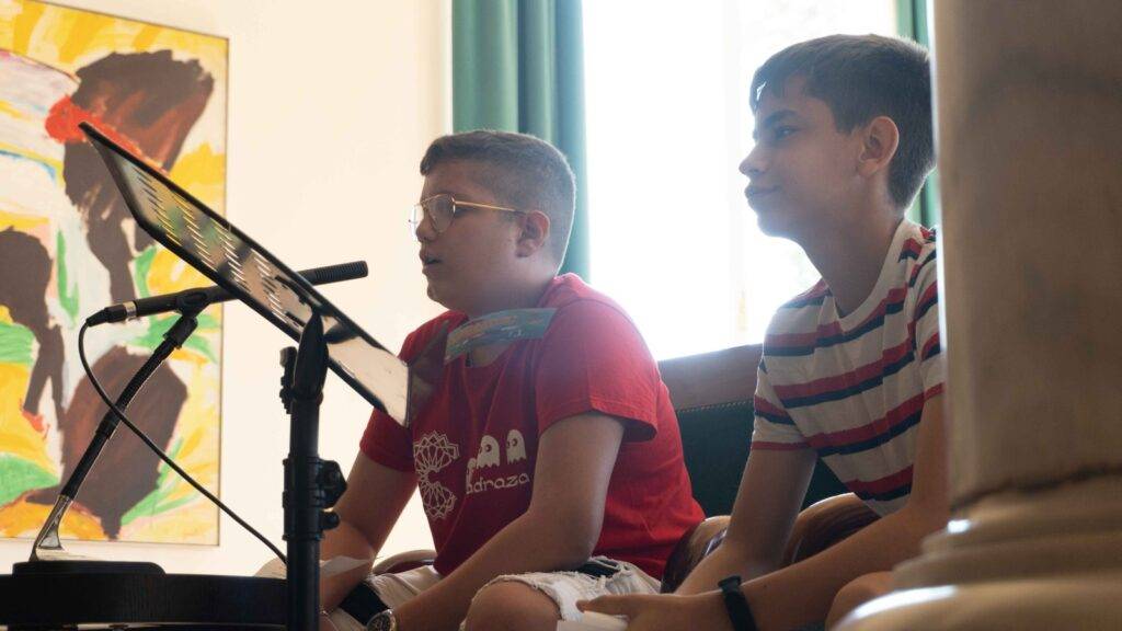 Como invitados especiales intervinieron dos alumnos de La Madraza: Marcos Tamayo y Daniel Ruiz, ambos de 2º ESO C, que explicaron que en el Instituto también se trabaja la salud planetaria y la justicia social desde el Programa Ecoescuelas. A modo de ejemplo enumeraron algunas actuaciones realizadas sobre el consumo responsable en el curso 2021-22 y sobre la biodiversidad en el 2022-23.