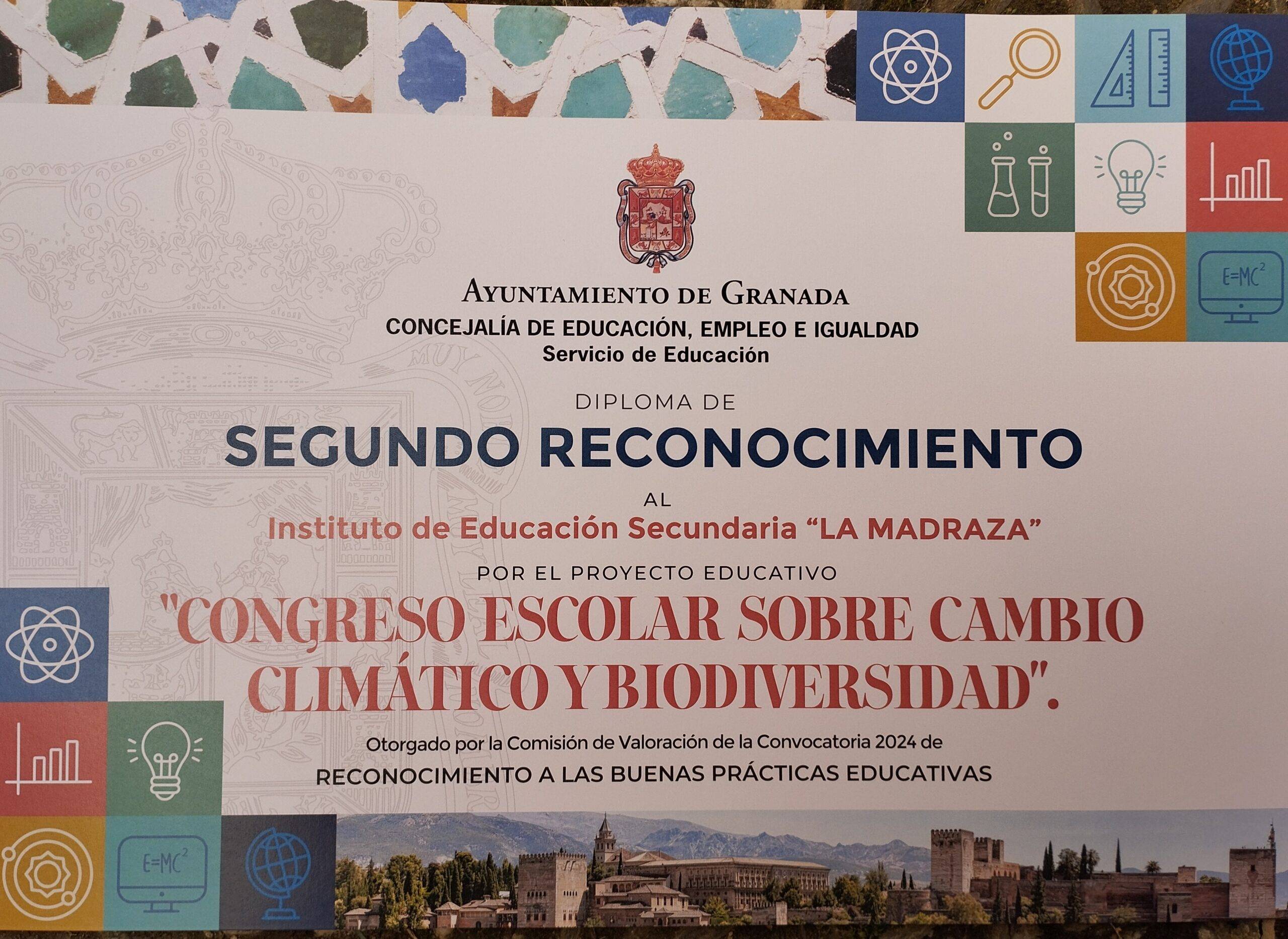 El Ayuntamiento de Granada ha otorgado el segundo premio de Buenas Prácticas Educativas 2024 al IES La Madraza por el Congreso Escolar sobre Cambio Climático y Biodiversidad. De esta manera se da a conocer esta experiencia que puede servir de inspiración a otros centros educativos.