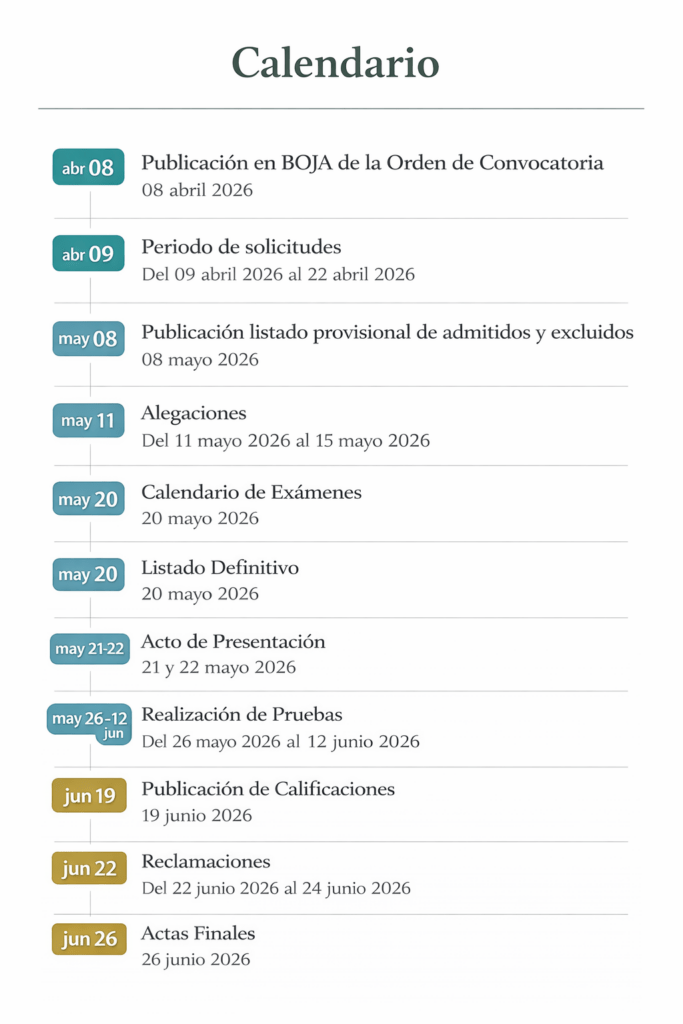 Previo a la realización de las pruebas, habrá un acto de presentación telemático para todo el personal matriculado. El aspirante garantizará electrónicamente su identidad mediante certificado digital o DNI electrónico y deberá acceder, a través de la Secretaría Virtual, los días 21 y 22 de mayo de 2026.