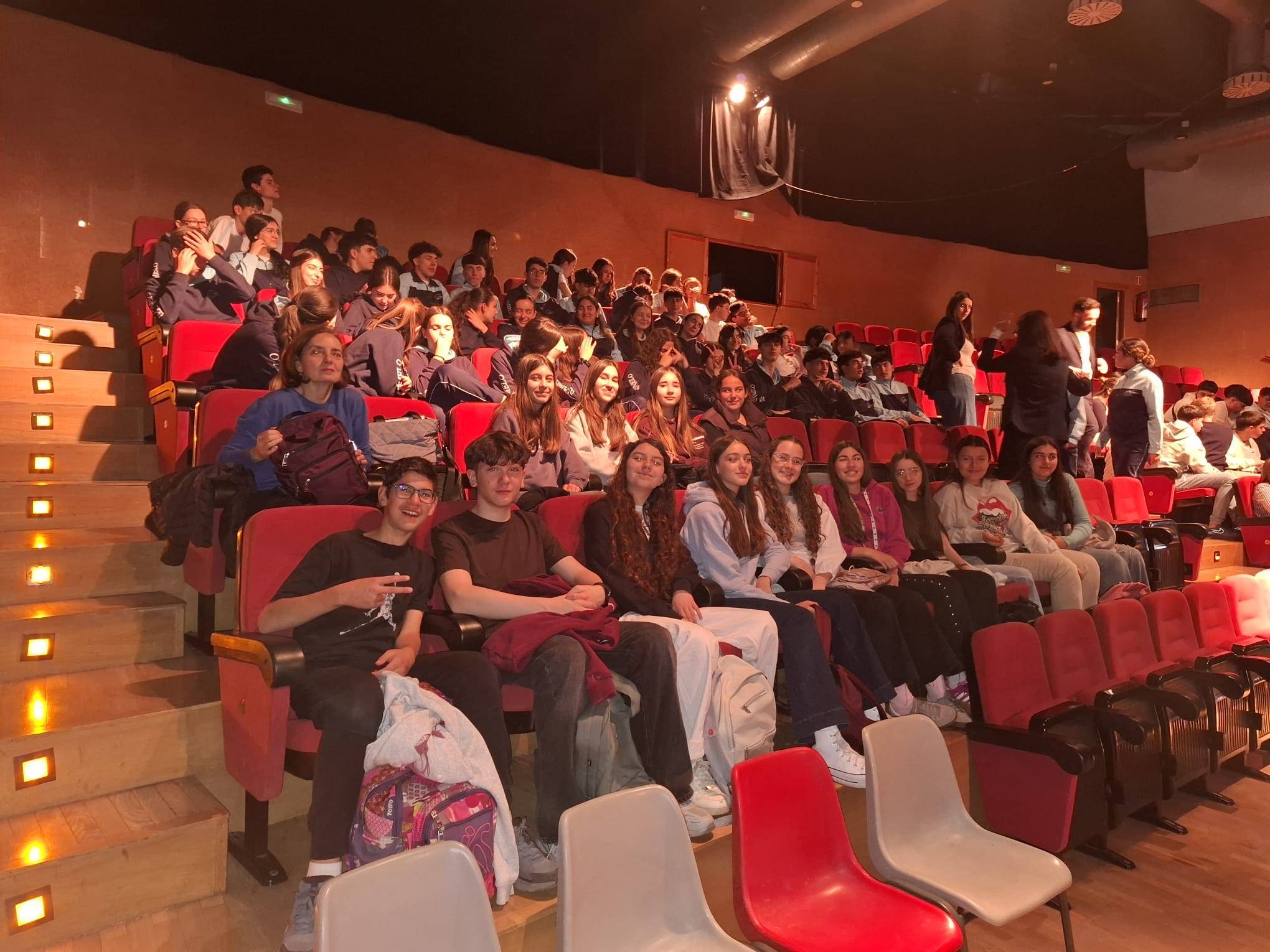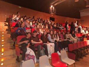 Los alumnos y alumnas de 3ESO de la materia «Sube el telón» han ido al teatro en el Centro Cívico Zaidín para asistir a la representación de Tres sombreros de copa de Miguel Mihura. Ha sido muy interesante ver montada una obra que había sido leída y trabajada en clase. El espectáculo logró captar su atención desde el inicio, combinando momentos divertidos con otros más reflexivos. Han estado acompañados por M. José Rodríguez y, además, por su muy querida profesora Carmen Onieva.