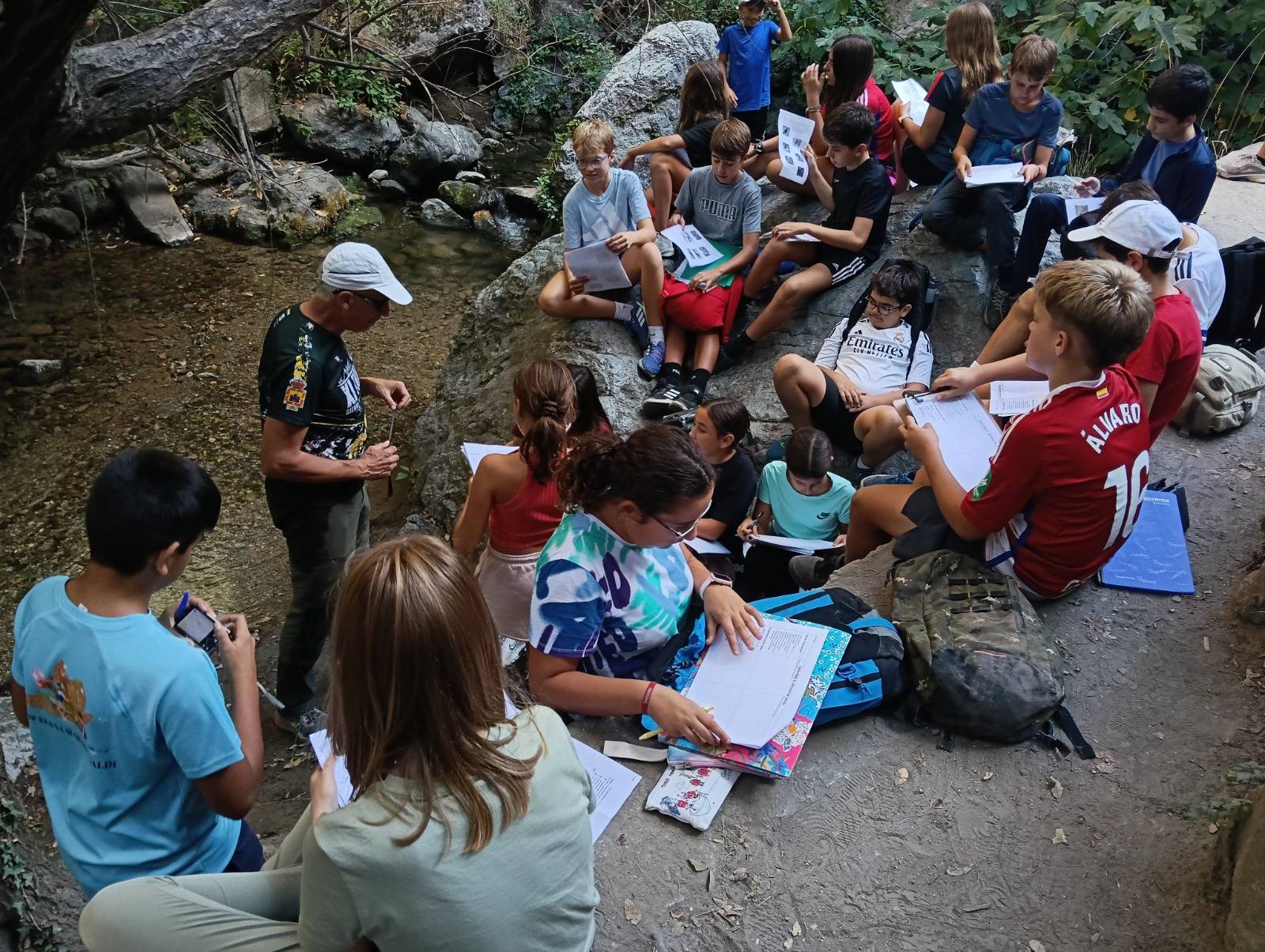 En el marco del proyecto Ecoescuelas «Los ríos de Granada”, el grupo de 1º ESO C se desplazó el pasado miércoles 15 de octubre hasta Los cahorros del río Monachil para disfrutar de un magnífico día de convivencia y de estudio. Acompañados por su tutor Carlos Rabelo y su profesor de biología y geología, Francisco Bazoco, los alumnos de 1º ESO C hicieron una observación y análisis del caudal, el cauce, bosque de ribera y los usos tradicionales y modernos de esta corriente fluvial. Disfrutamos todos de un divertido y productivo día de juegos y aprendizaje.