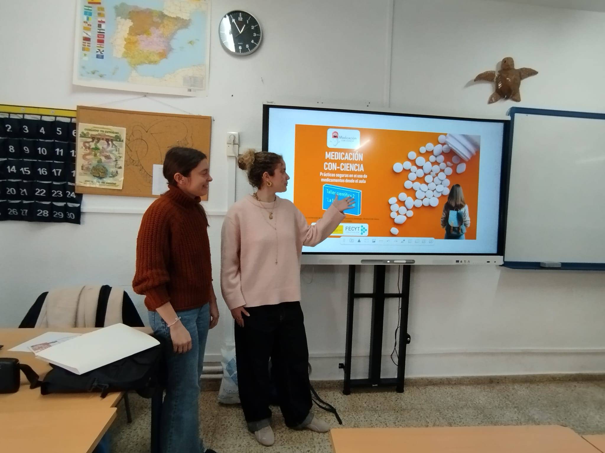 Durante el mes de febrero dos alumnas del Máster y Doctorado de Enfermería de la UGR, Cristina Ballesteros Rubio y Alejandra Ortega Jiménez, llevaron a cabo su proyecto: «medicamentos con-ciencia» con los alumnos de 3° B. Su investigación consiste en concienciar a los jóvenes acerca del uso de medicamentos y ayudarles a entender los símbolos y los datos que hay en la caja y prospecto de cada uno de ellos. En próximas fechas otros grupos disfrutarán de este taller.