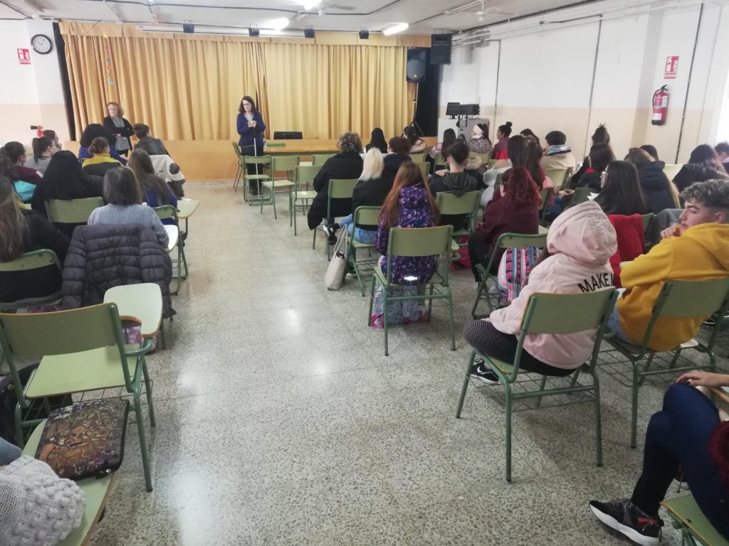 Inmaculada agradeció la acogida en el Centro por parte de Paco, el Orientador, quien al llegar ya se había leído el libro que envió el día anterior con Miguel Ángel, para facilitar la interacción con el alumnado.